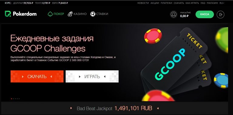 На главной странице рума выводится информация о текущем размере бед-бит джекпота для столов с Омахой и Техасским Холдемом. Также здесь есть рекламные баннеры и три основных раздела: